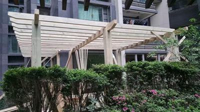 5、最后,成都花架公司小編建議,做好防腐木花架后,還要給防腐木花架周圍進(jìn)行水泥灌注,固定防腐木花架,然后給表面上一層漆,保護(hù)其表面,從而使防腐木花架能夠很好地使用。